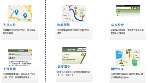 用戶地理位置上報;用戶地理位置地圖顯示;用戶上報警情信息(圖片,文字);實時緊急調(diào)度。