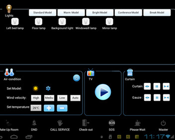 影視音像控制;酒店介紹;緊急呼叫。